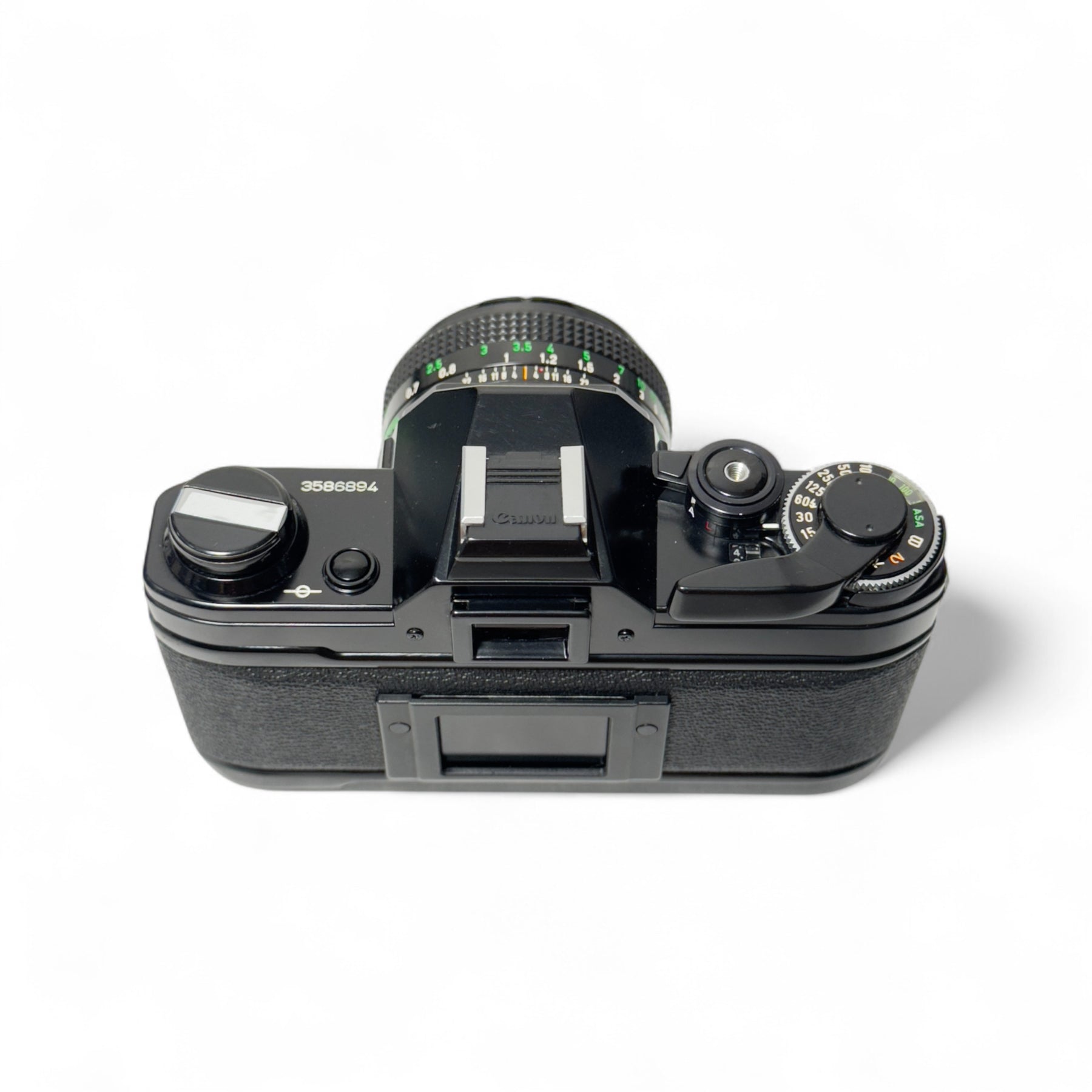 The Canon AE-1 sports the classic silver and black finish in near-mint condition! The shutter-speed dial, which provides speeds from 2 to 1/1000 second, as well as Bulb. The ASA selection permits metering for film speeds between 25 and 3200 which is perfect for any versatile photographer.