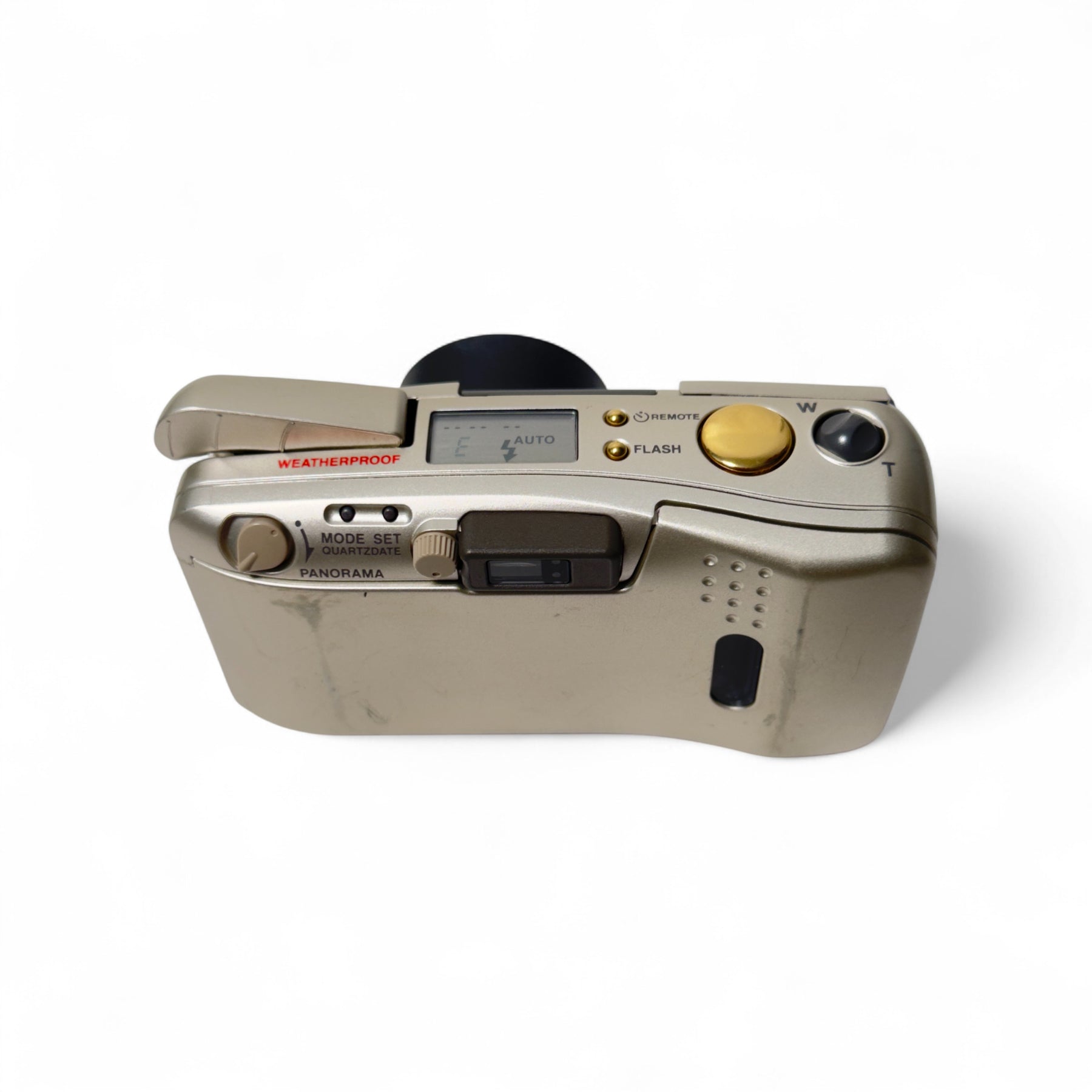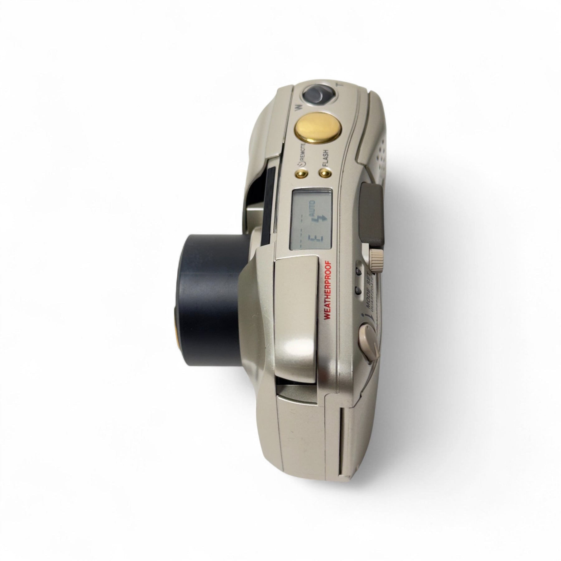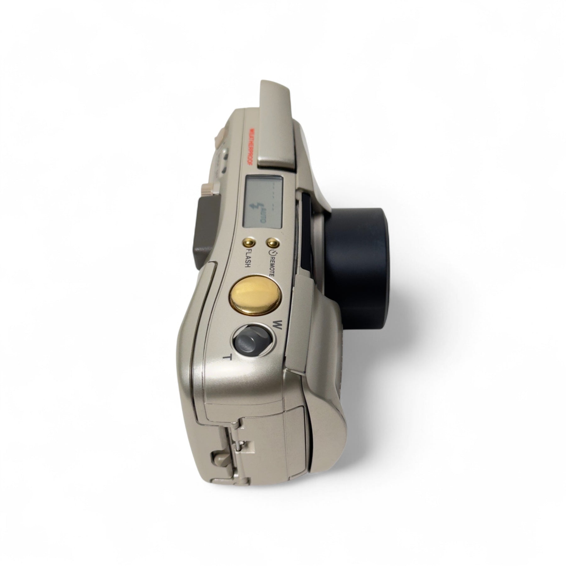 This Olympus MJU Zoom point-and-shoot film camera has a 38-105mm zoom that works perfectly even in rain or storm, thanks to its weather-proof design.
