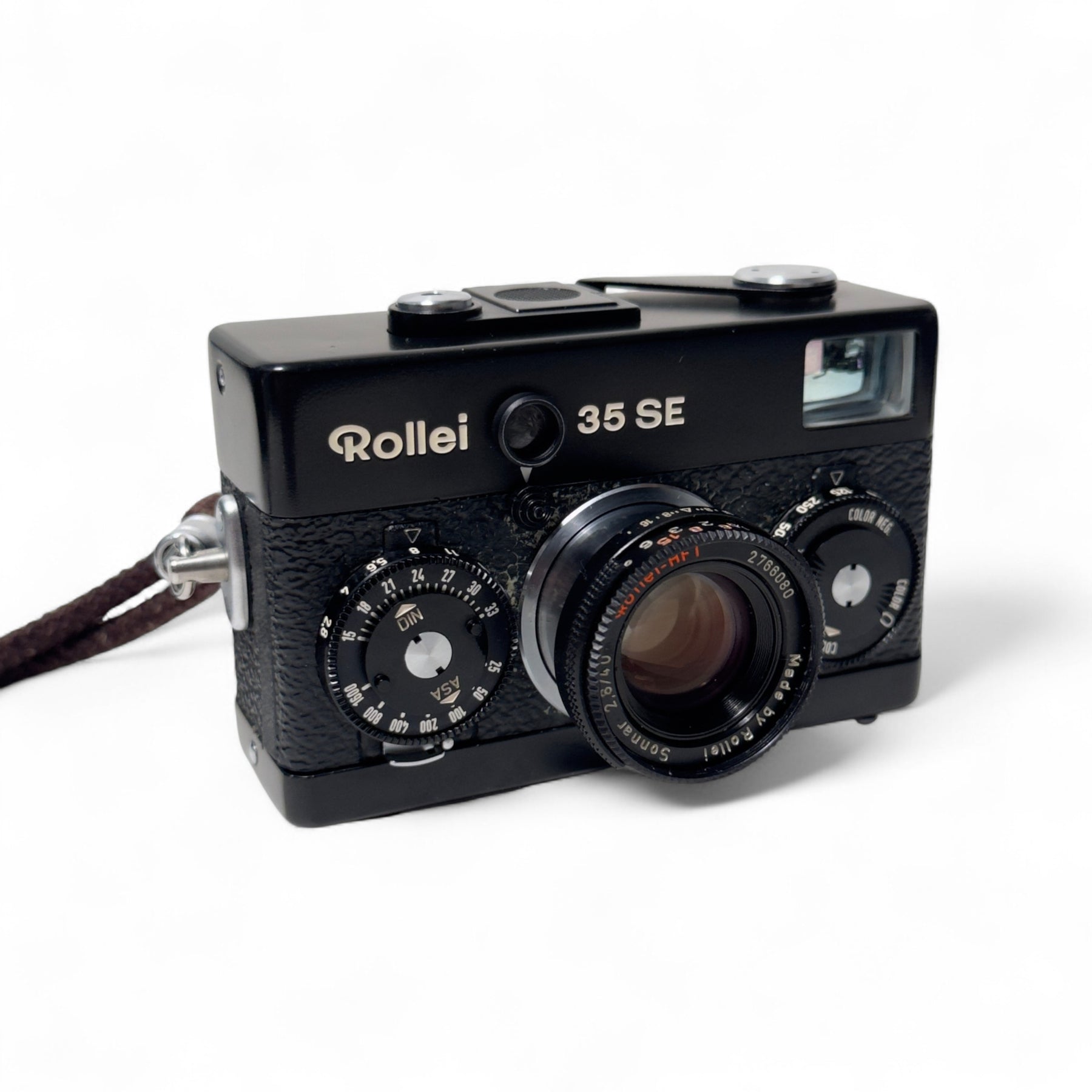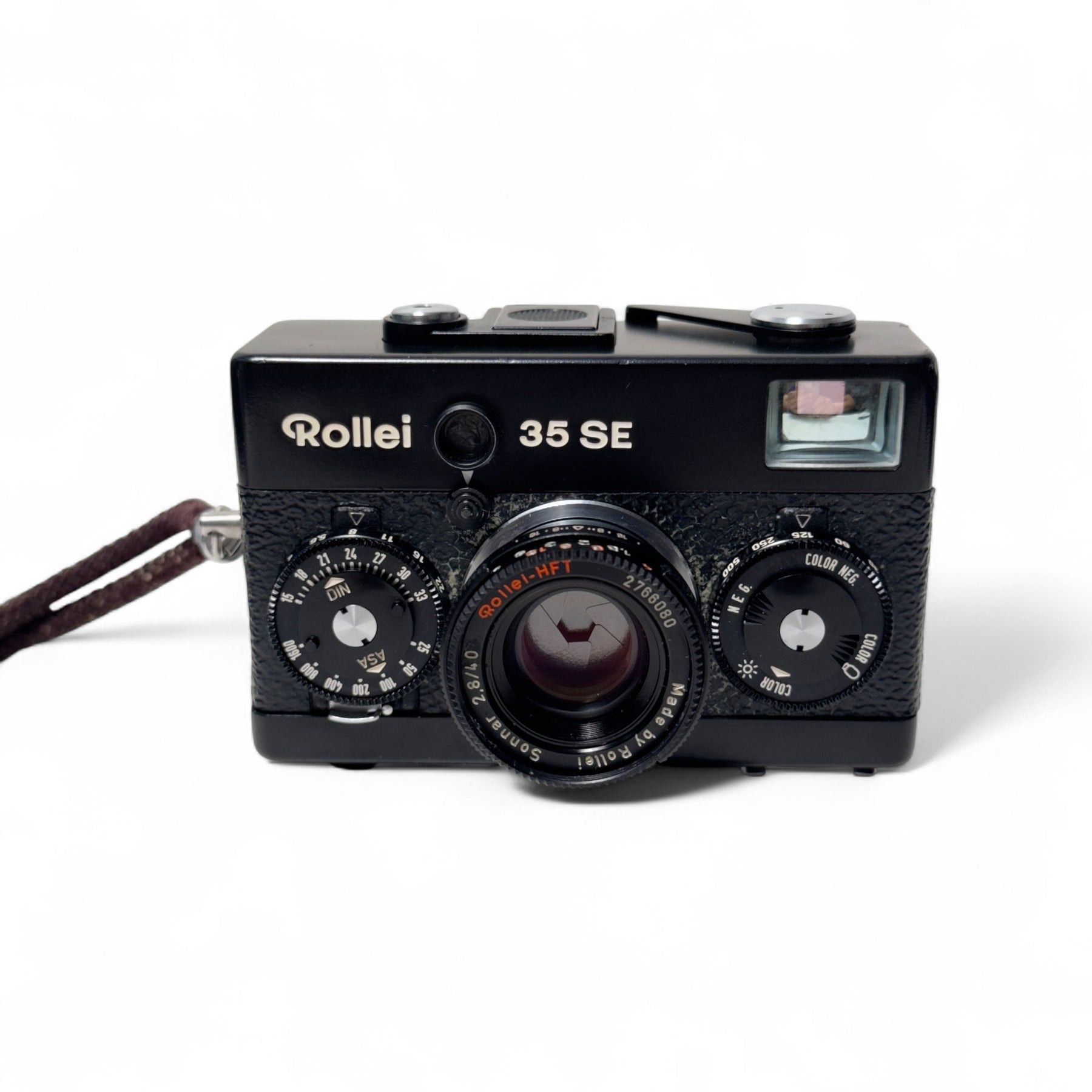 The Rollei 35 SE is the final and most advanced model of the Rollei 35 series. It adds a bright LED meter system and retains the legendary Sonnar 40mm f/2.8 lens, producing rich contrast, fine detail, and glorious vintage vibes with every shot.