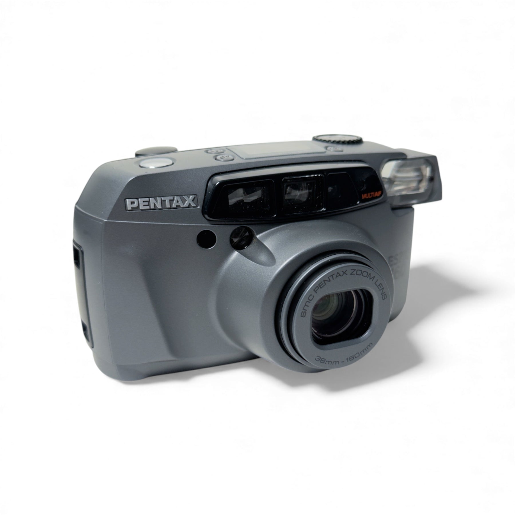 The beautiful Pentax Espio 160 is a fully automatic 35mm point and shoot camera with autowind and rewind, a built in flash, a self timer with a 38-160mm F/4.5-F/12 zoom lens.