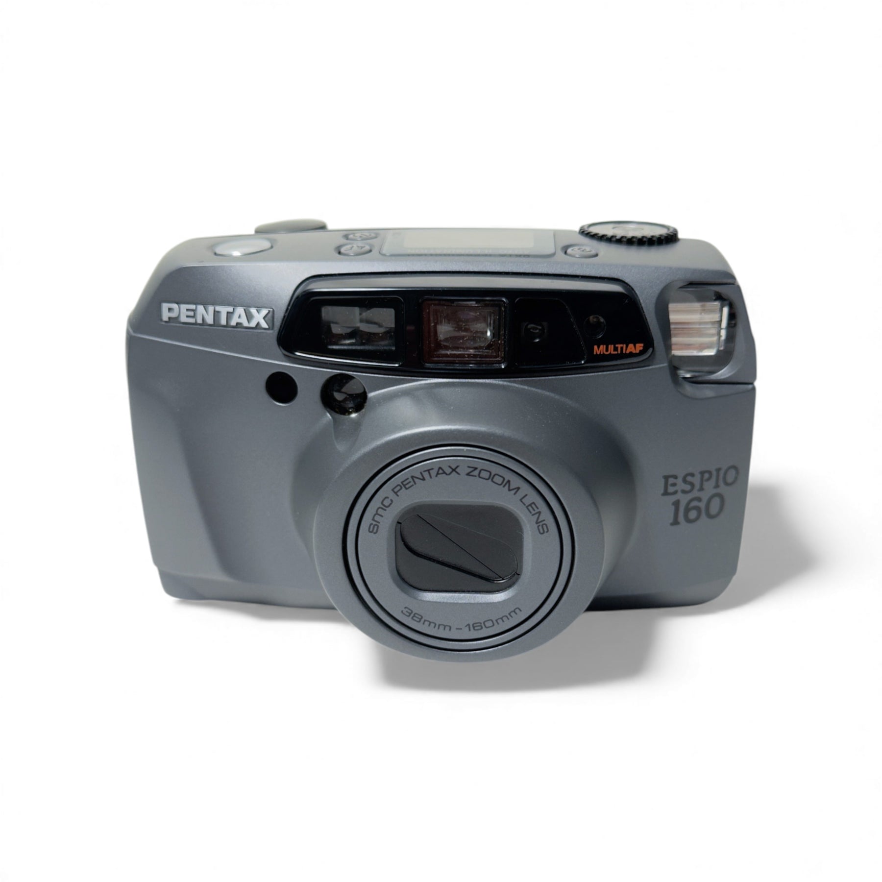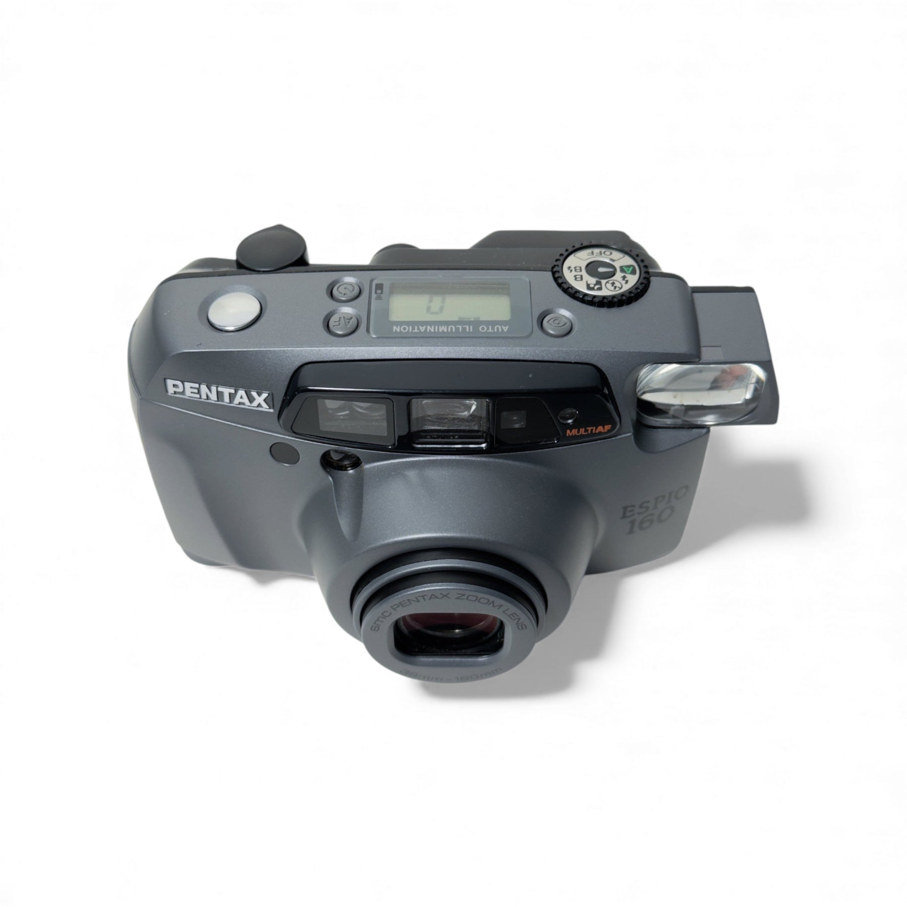 Pentax Espio 160 Body - Near-mint overall condition of the camera body. Only issues are the cosmetic issues - has tiny blemishes & scratches on the body - please refer to the product images for the detailed cosmetic condition.  Clear lens free from dust, fog and fungus. Some dusts in the viewfinder does not effect shooting. Film advance and shutter release smoothly operating. Flash works correctly. Mechanically thoroughly tested and in fully working order.